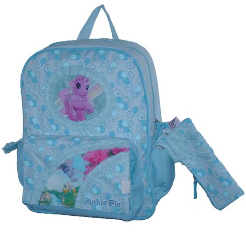 This is a brand new with tags, licensed My Little Pony Large blue School BackpackMeasures: 16"H x 11"L x 5" W * LARGE MAIN COMPARTMENT * FRONT LARGE ZIPPERED POCKET * TWO SIDE POCKETS * DURABLE CANVAS * BONUS PENCIL CASE * ADJUSTABLE STRAPS ON BACK